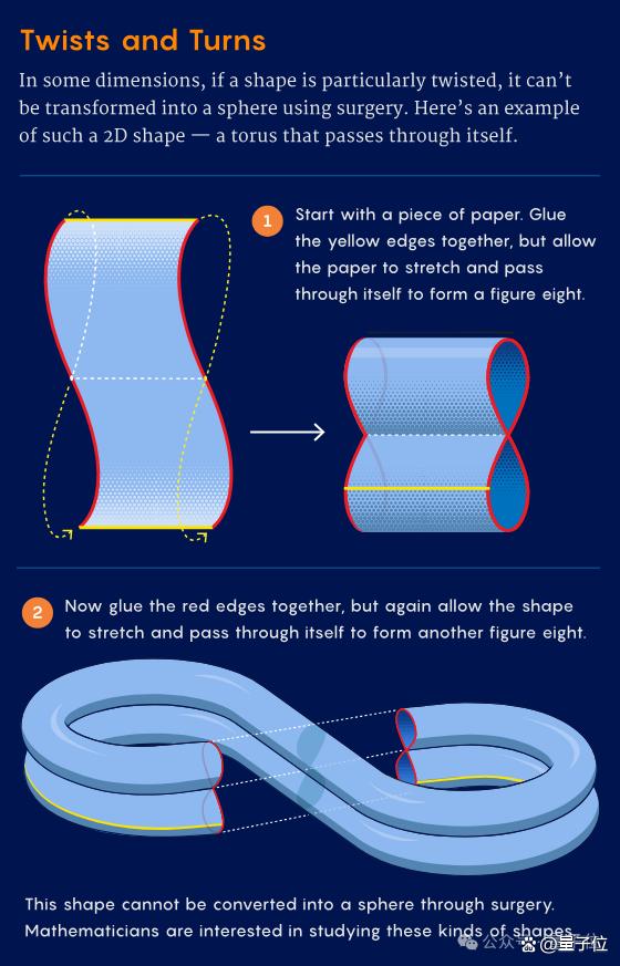 甚至当涉及到扭曲形状时,surgery还必须符合流形的“框架”,即流形在空间中的摆放位置。