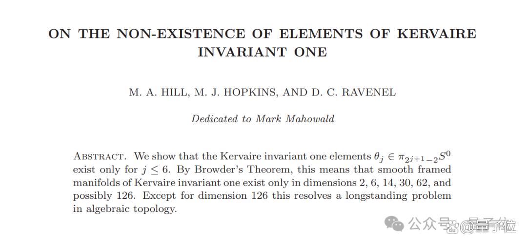 来自复旦大学的林伟南、王国祯以及UCLA的徐宙利合作,解决了126维空间的Kervaire不变量问题。