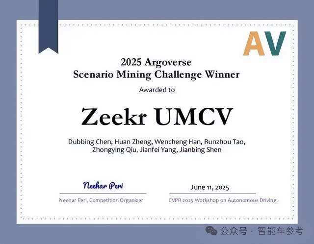 几乎同时,吉利透露智驾团队在CVPR 2025的自动驾驶场景挖掘挑战赛中击败一众全球顶尘车企及研发团队,斩获世界冠军。