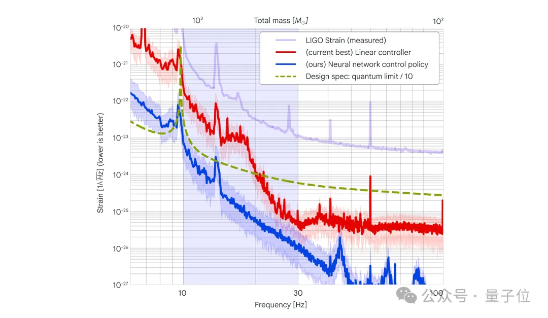 这次AI一出手,直接把10-30Hz频段控制噪声强度降低至传统方法的1/30,部分子频段更是压至原来的1/100,超越了量子极限设定的设计目标。