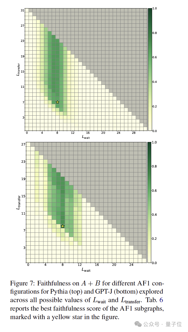 最后,研究人员在Pythia和GPT-J中也发现了类似AF1的子图,但与Llama不同,这些模型的等待期更短(L_wait ≈ 9–11)、信息传输层更长,且性能边界不如Llama清晰。