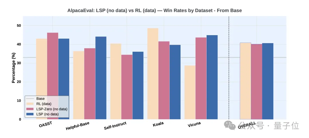 实验显示,经过LSP的进一步训练后,模型的整体胜率从40.9%显著提升到了43.1%。