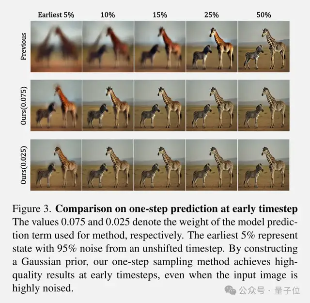 这个方法让模型能够从高噪声状态直接恢复出清晰图像,避免了传统方法在早期时间步反向传播时的梯度爆炸问题。实验表明,即使在只有5%去噪进度的极早期阶段,Direct-Align也能恢复出图像的粗略结构。