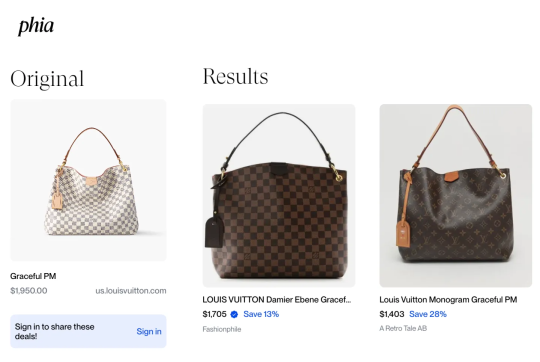 Phia表示,其数据库已与The RealReal、Vestiaire Collective、ThredUp、StockX、eBay、Poshmark等顶级转售平台接入,覆盖超过2.5亿件商品。